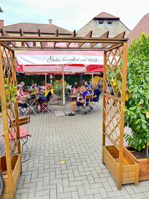 Im Zielbereich beim Johanns Brauhaus konnte man gemütlich im Biergarten Getränke und Essen vom Grill genießen und so den Tag zusammen ausklingen lassen.