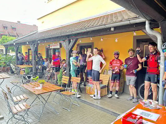 Am Samstagmorgen, den 02. August, trafen sich alle Teilnehmer pünktlich um 9:30 Uhr. Nachdem das Gepäck sicher im Begleitfahrzeug verstaut war, schwangen wir uns in die Sättel. Vor uns lagen 130 Kilometer, gespickt mit Vorfreude und dem einen oder anderen Anstieg.