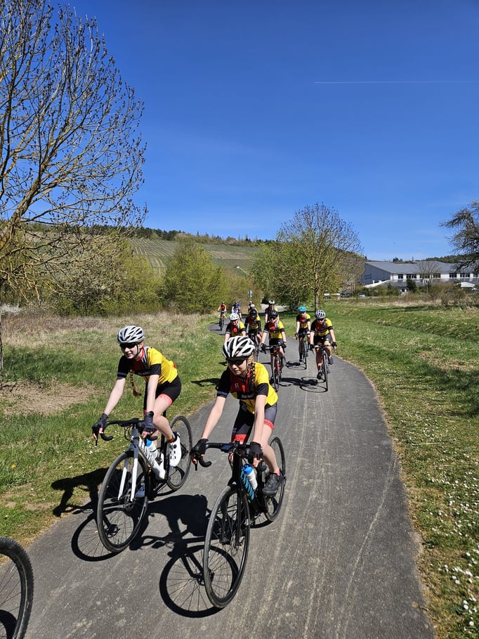 Am Samstag war Auftakt zum Trainingslager@HOME. Die Kids nutzen die Osterferien um ein paar zusätzliche Kilometer in die Beine zu bekommen. Wie soll das am Besten gehen - mit Spaß und Spiel 🥳. Über 20 Kinder haben sich zur Abnahme des Deutschen Sportabzeichens angemeldet. Am Samstag standen die Disziplinen Schnelligkeit mit 200m fliegenden Rad-Sprint und Ausdauer über 5 bzw. 10 km auf dem Programm. Die ältestens Kids mussten sogar schon auf die 20km über einen 30er Schnitt fahren, um sich in die Zeit der Goldmedallie zu fahren.